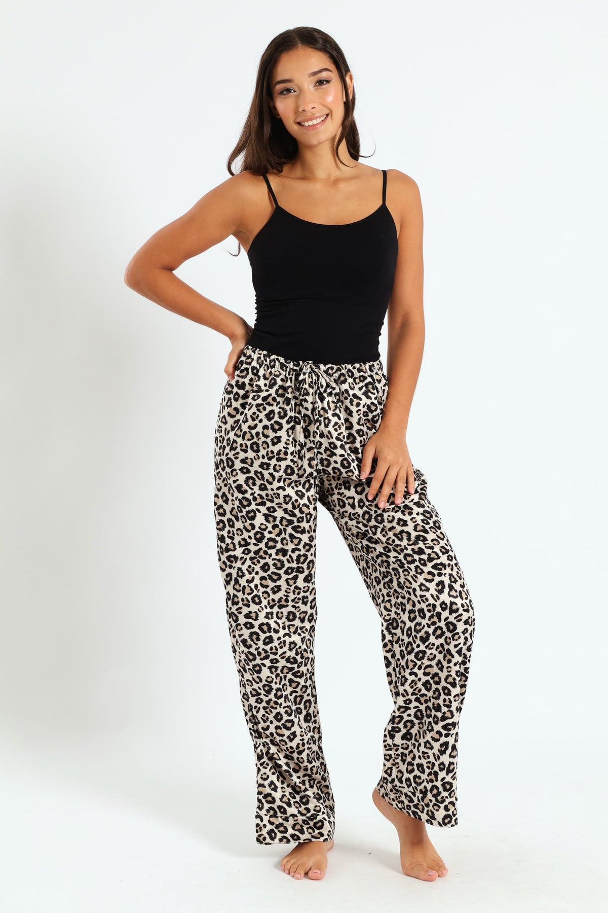 Straight Leg Animal Print Satin Pant - Black/Brown