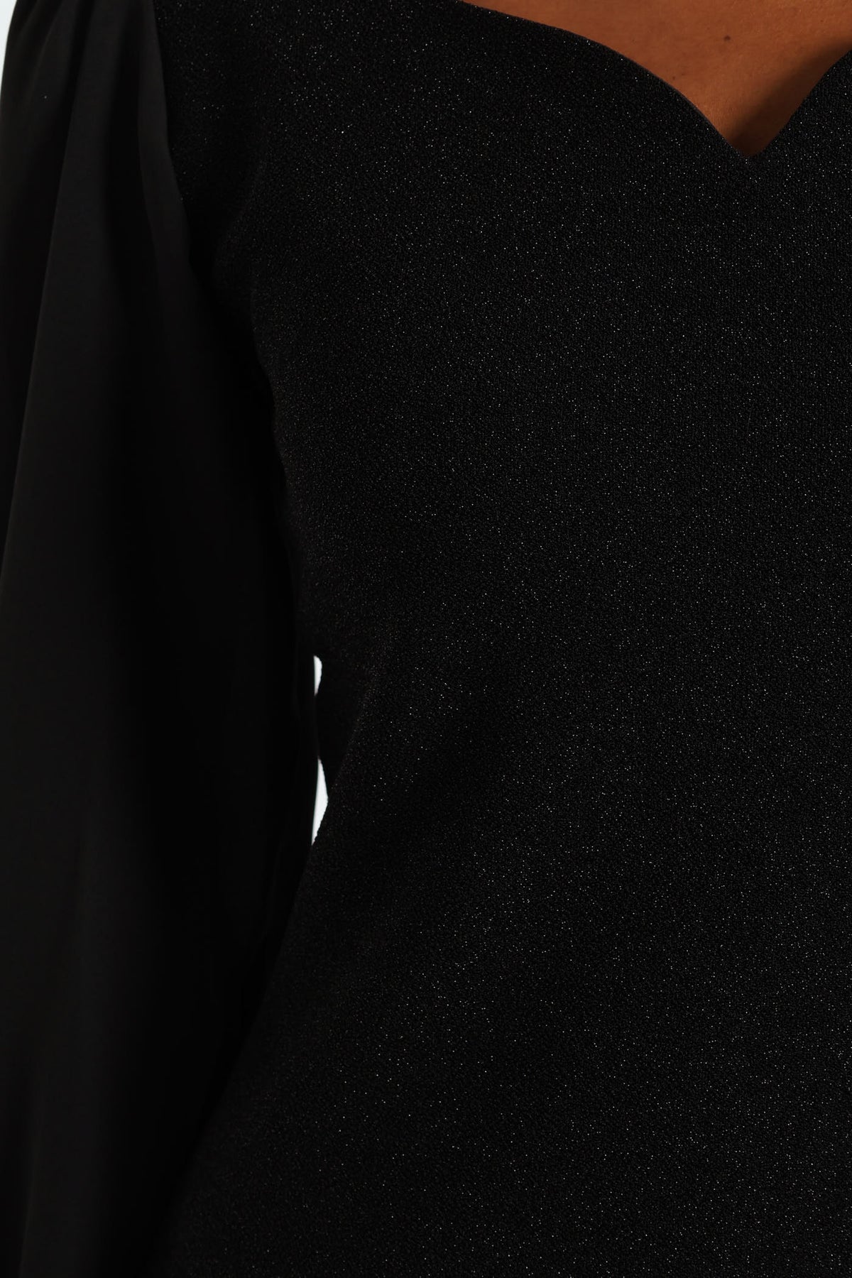 Sweetheart Neckline Shimmer Combo Blouse - Black