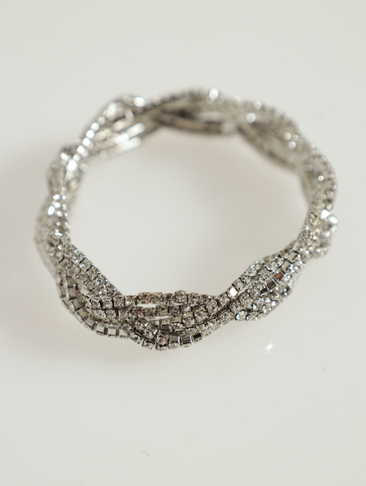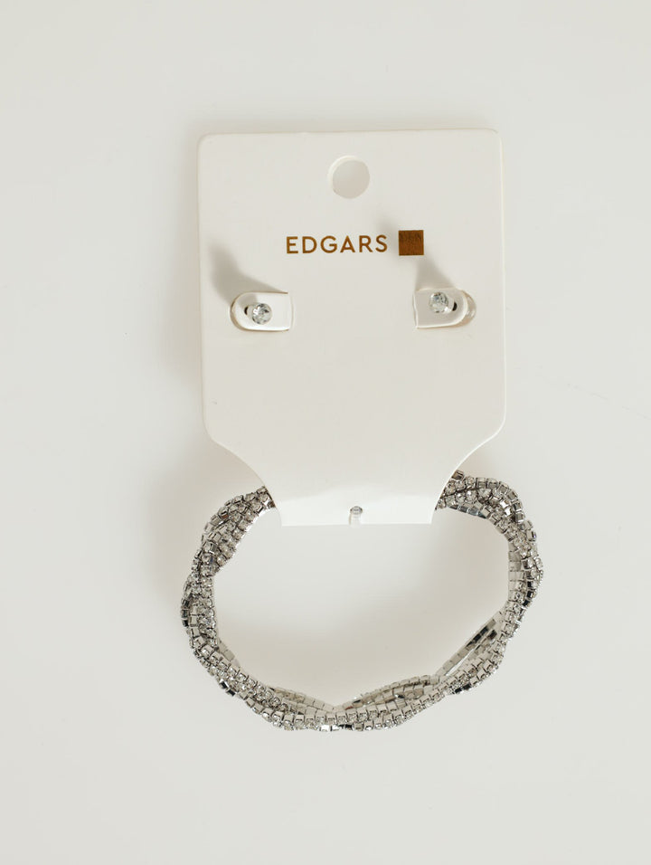 Twist Diamante Stretch Bracelet And Studs - Silver