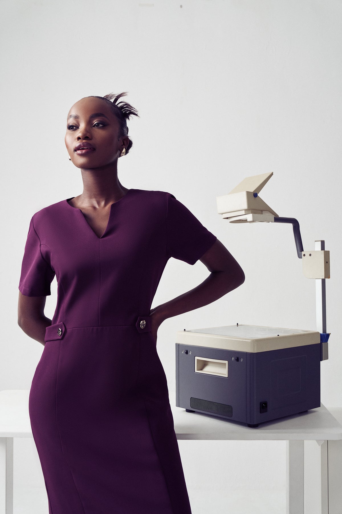 V-Neck Notch Side Tab Pencil Dress - Plum