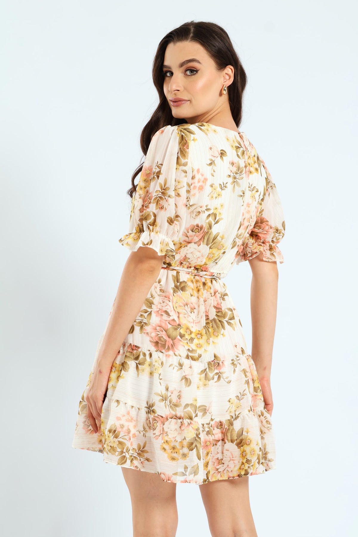 V-Neck Waisted Frill Hem Tea Dress - Blush