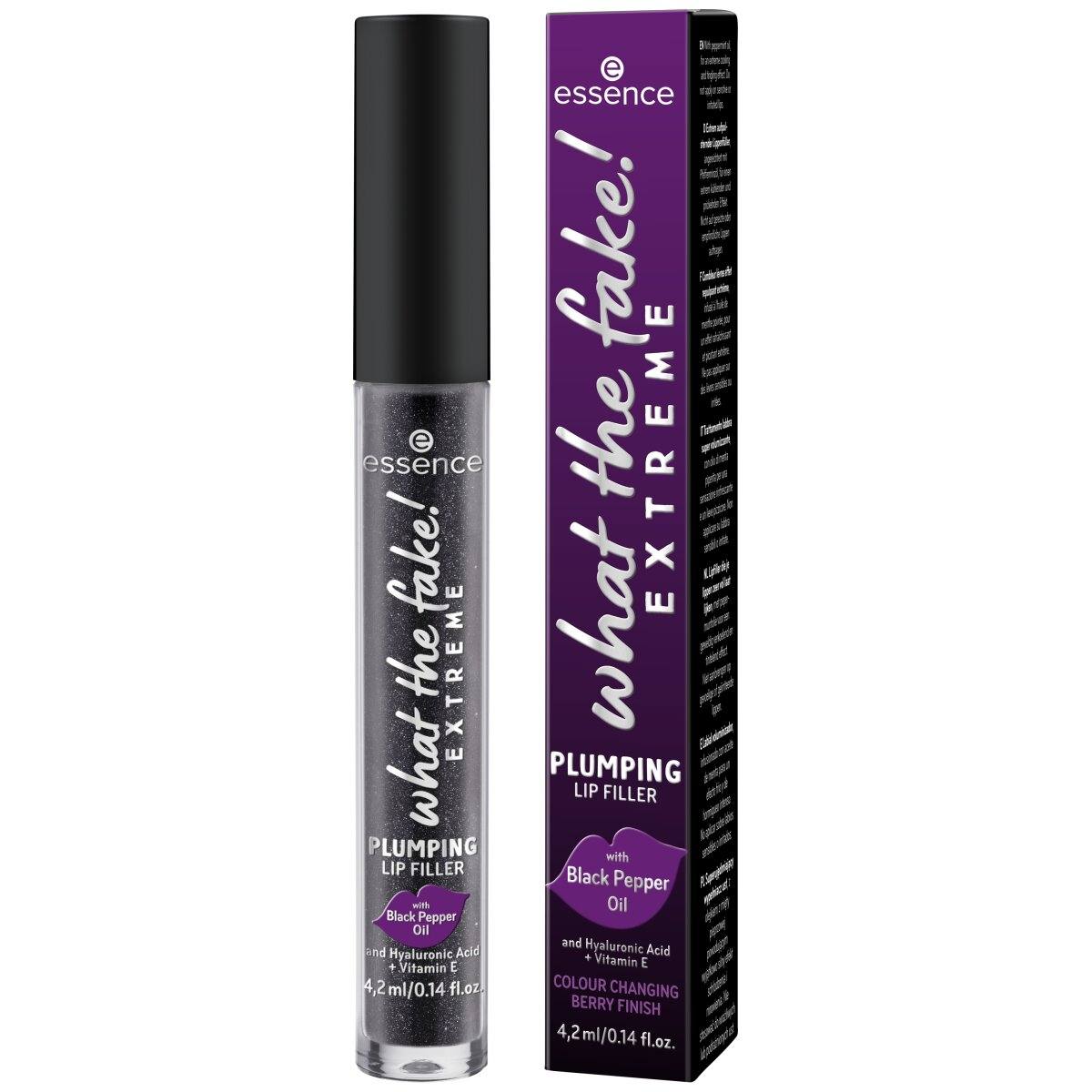 PEPPERTASTIC! - the plumping lip gloss what the fake! EXTREME PLUMPING LIP FILLER 03 Pepper Me Up! with black pepper oil, hyaluronic acid and vitamin E creates fuller looking lips with a strong tingling effect.