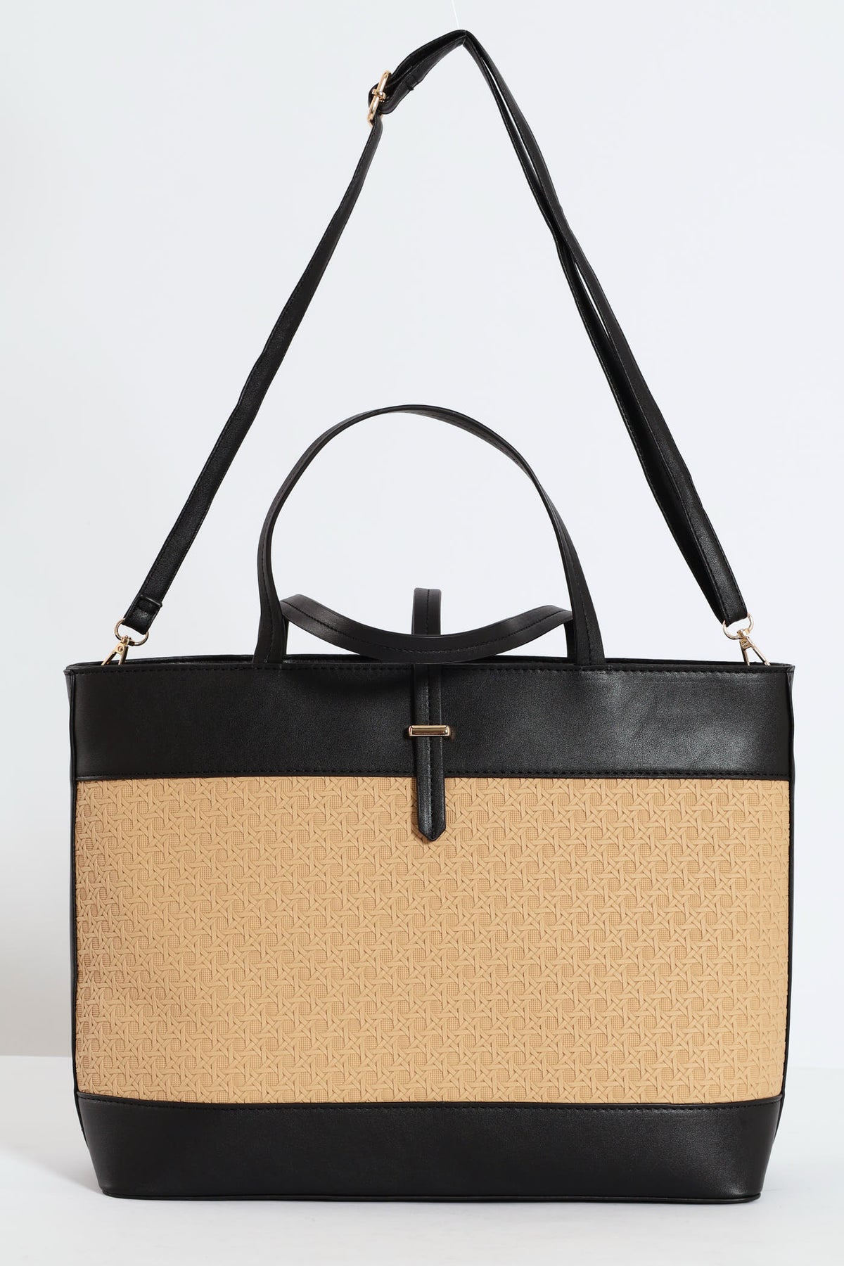 Experience the perfect blend of style and functionality with our Wicker Detail Tote Bag in Black. This sleek and elegant bag features delicate wicker detailing that adds a touch of sophistication to any outfit. Its spacious interior and sturdy design make it the ideal choice for everyday use or special occasions. Elevate your fashion game with our Wicker Detail Tote Bag!