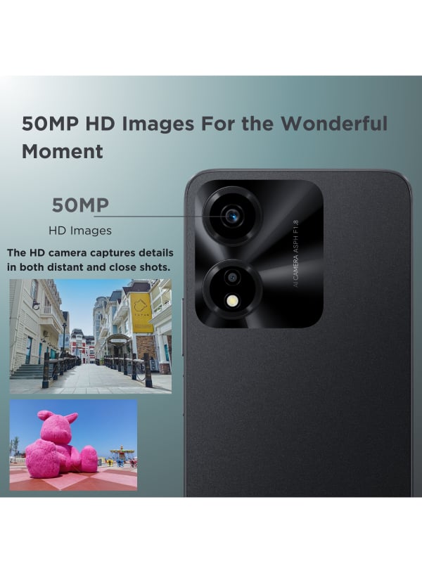 • Camera: Rear camera- 50MP+2MP, Front camera- 5MP