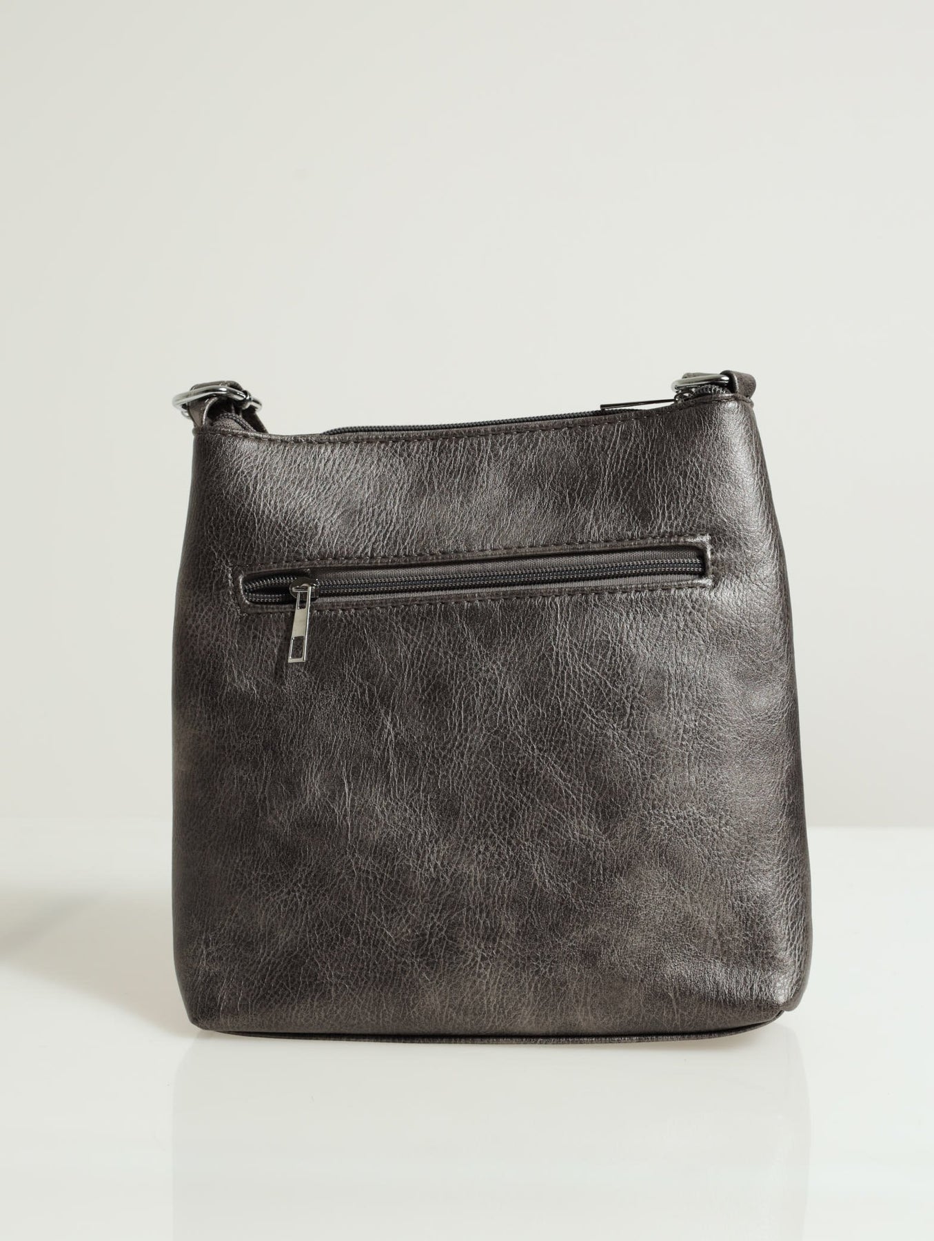 Discover the ultimate in style and functionality with our Zip Detail Cross-body Bag in Pewter. Perfect for storing all your essentials, this bag features a sleek zip closure and adjustable strap for comfortable wear. The pewter color adds a touch of elegance to any outfit.